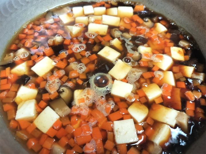具にしても、戻したしいたけ、にんじん、豆腐と確かに家庭料理に頻繁に登場する材料ばかりで、特別な食材を使わないところが家庭料理だなと納得させられます。