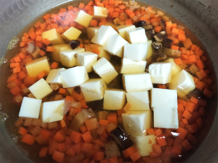 4. 3にしいたけと豆腐を加えて弱火にします。
