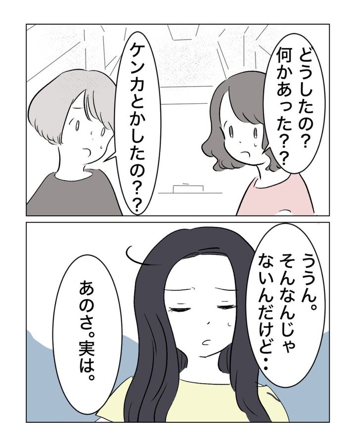 「どうしたの?何かあった??」とエマさんが言うと、「ケンカとかしたの??」とホノカさんも聞きました。「ううん。そんなんじゃないんだけど・・あのさ。実は」とアオイさん。