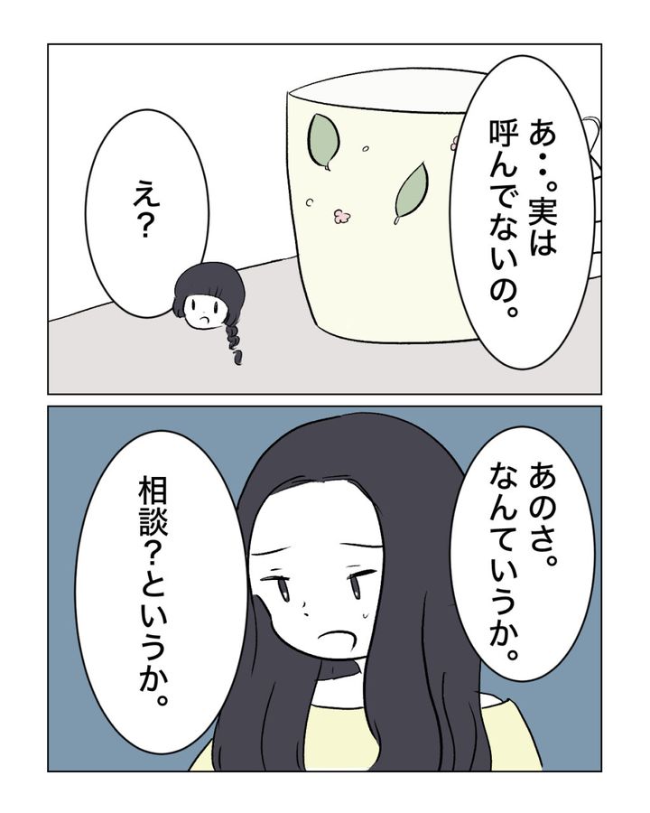 「あ・・。実は呼んでないの」とアオイさんが言い、「え?」と驚くリオさん。すると、「あのさ。なんていうか。相談?というか」とアオイさんが切り出して、