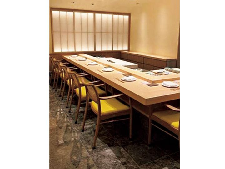 店内は、すし店には珍しい柔らかく温かみのある内装。「実家が白壁で黄色いソファがあり、その雰囲気にしました。家のようにくつろいでもらいたい」。