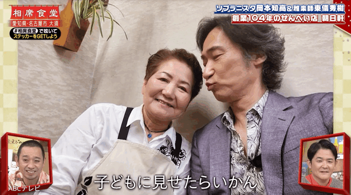 バラエティ番組『相席食堂』(ABCテレビ)に、日本が世界に誇る65歳の雅楽師が登場! 実はお茶目な性格をしている彼は、商店街ロケでボケまくり。とある店の女将との記念撮影でハプニングを起こし、彼女とのチューショットが撮れてしまい……!?