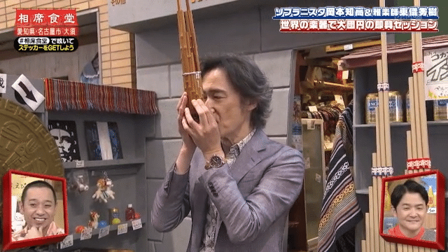 そんな東儀は、愛知県名古屋市中区大須を訪れた。東儀は、全国屈指の規模を誇る大須商店街をブラリと散策しながら、積極的に販売スタッフや遠足中の高校生、常連客たちと交流。高価な楽器を吹かせてあげたり、一緒にセッションしたり、記念撮影をしたりする中でボケまくり、お茶目な一面をたびたびのぞかせた。