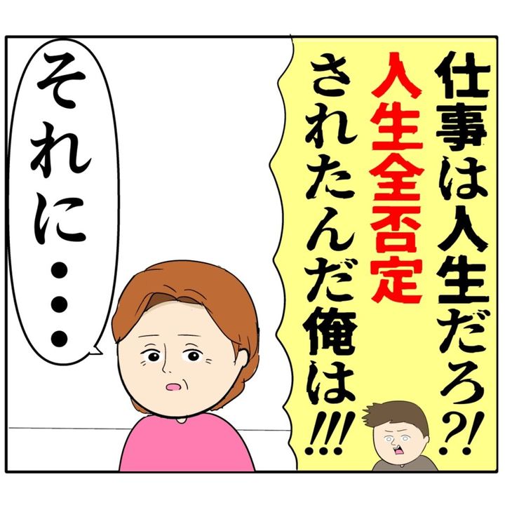 兄の次郎さんから「モモさんに怒るのはおかしい」「そこまで怒り狂うような内容とは思えない」とたしなめられた三郎さんは、「仕事は人生だろ?!人生全否定されたんだ俺は!!!」と激しく反論。すると、義母が「それに・・」と口を開き、