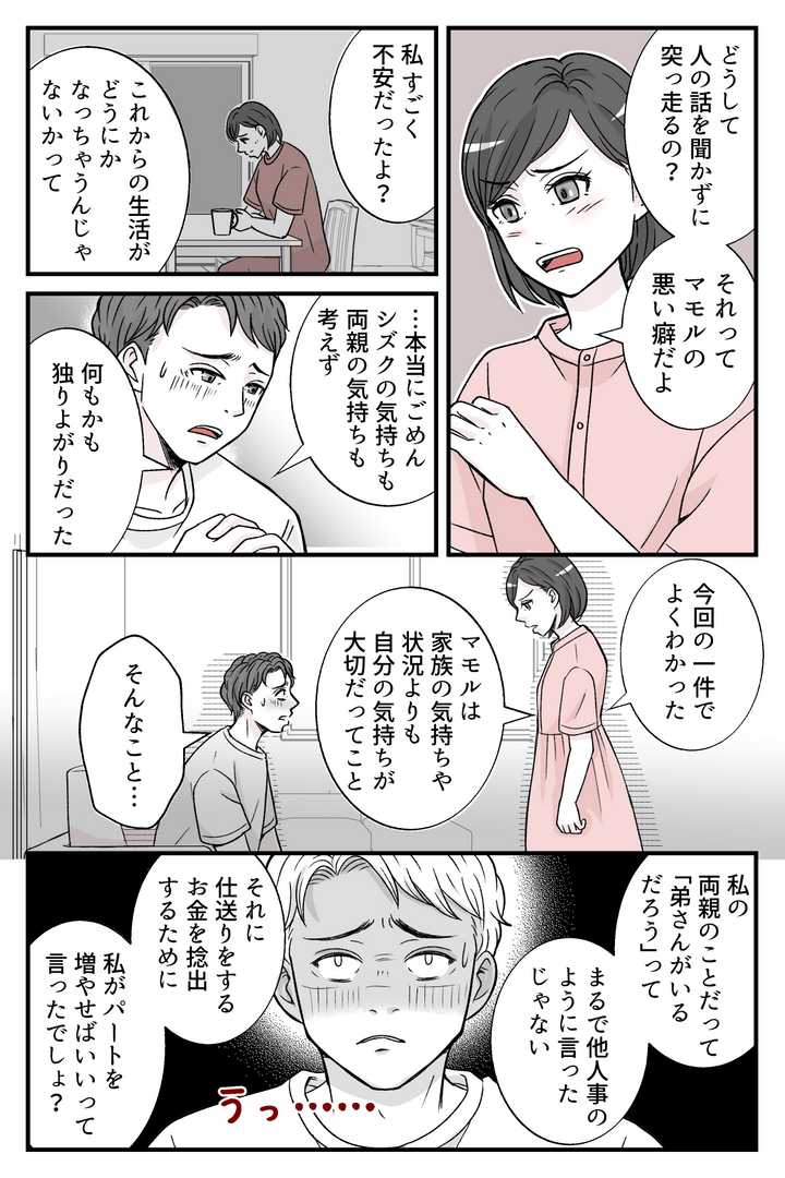 「愚かだった」と反省するマモルに、私は「今さら? 結局、自分と親のことしか考えていない」と冷たく言い放ちました。マモルの暴走が、私をどれだけ不安にさせたことか……。