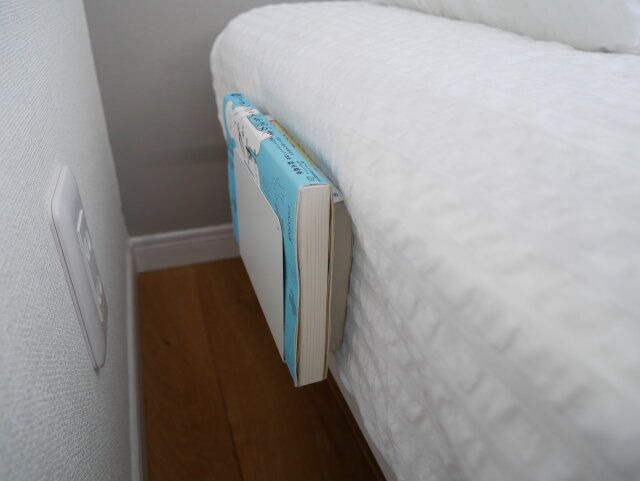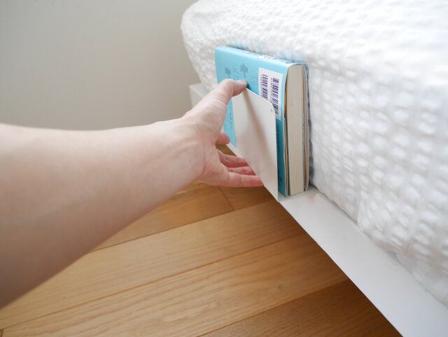そこで3つ目は、サイドテーブルを置くスペースがなくても、ソファやベッドの脇、数センチのデッドスペースに本などの収納場所を作る方法を紹介します。