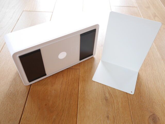 ②設置したブックエンドの側面に、ティッシュケースのマグネット面をピタッと装着したら完成。※マグネット面が広い場合は、ブックエンドを2個並べて設置します。