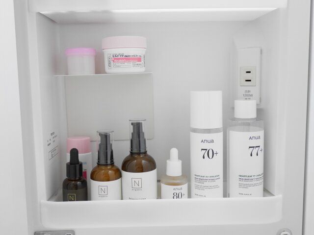 マウスケア用品やヘアケア用品、コスメなどが混み合う洗面所は、鏡面裏スペースをいかに上手く活用するかが要。