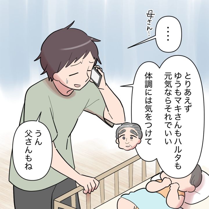 「母さん・・」とゆうは絶句。「とりあえず、ゆうもマキさんもハルタも元気ならそれでいい。体調には気をつけて」と言う義父に、「うん。父さんもね」とゆうが念押ししました。