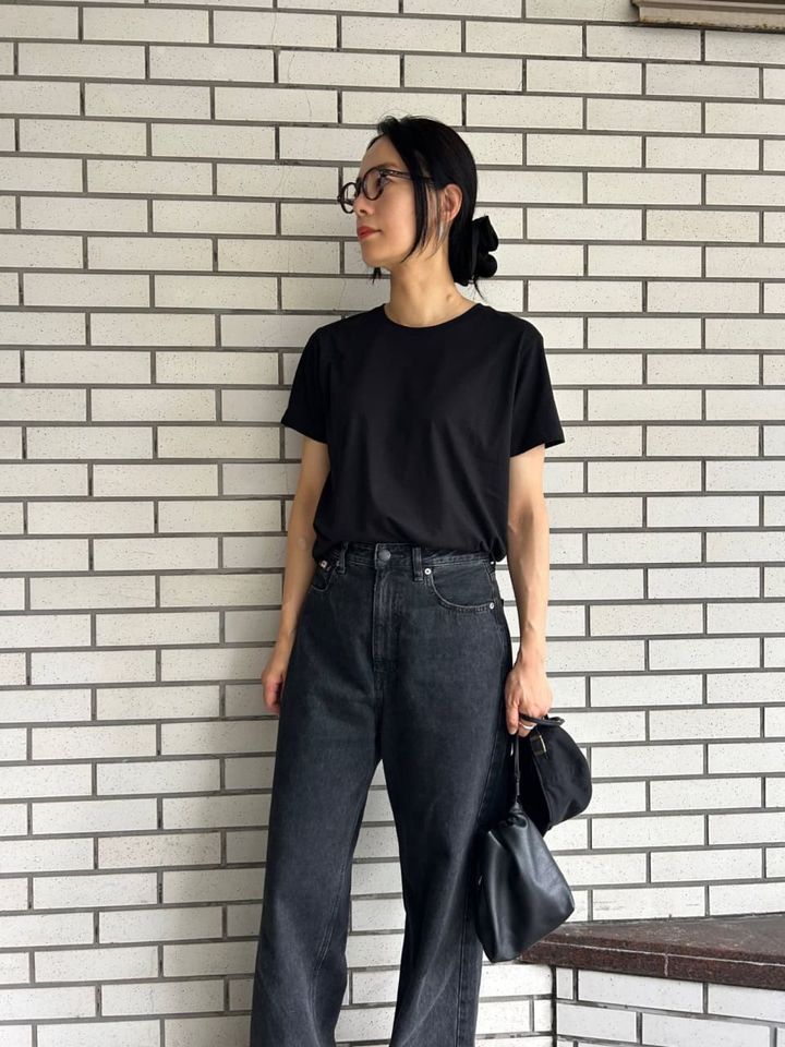 Tシャツ+デニムの王道コーデを、グッとモダンに見せてくれるヘアバンド。ラフなスタイリングだからこそやり過ぎ感がなく、洒落感を後押ししてくれます。