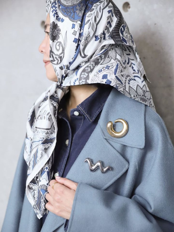 コーディネートとカラートーンを統一することで、リッチなスカーフを馴染ませるのもテクニック。柄が美しいスカーフをチョイスするときは、他をシンプルにまとめるのがベストバランス!