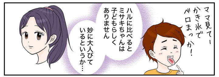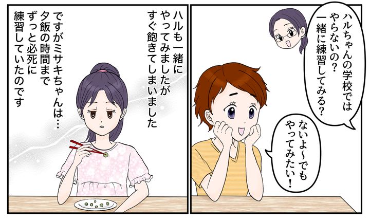 ハルも少しやってみましたが、すぐに飽きてしまいました。それなのにミサキちゃんはずっと必死で練習をしつづけていたのです。ハルとタイプが違うのはわかっているのですが、ミサキちゃんにはなんだか子どもらしさがありません。