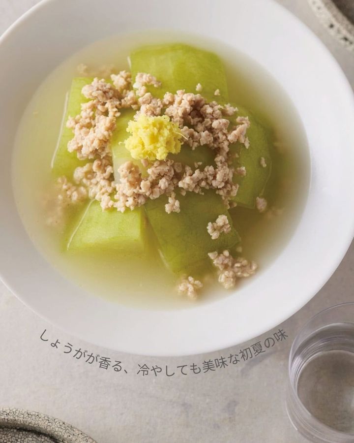 3. フライパンひとつで完結!煮汁ごと飲み干せる♡「鶏ひき肉と冬瓜の塩煮」のレシピ