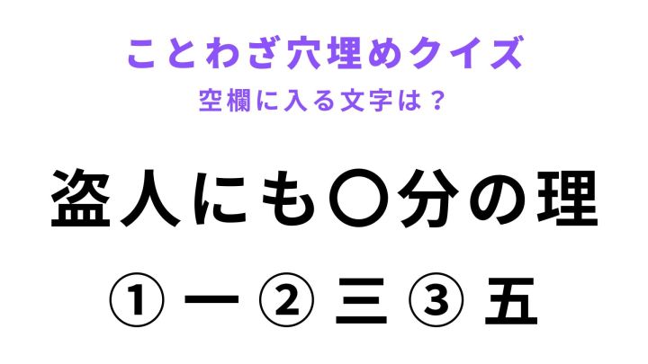 「盗人にも〇分の理」の空欄に文字を入れると、あることわざが完成します。