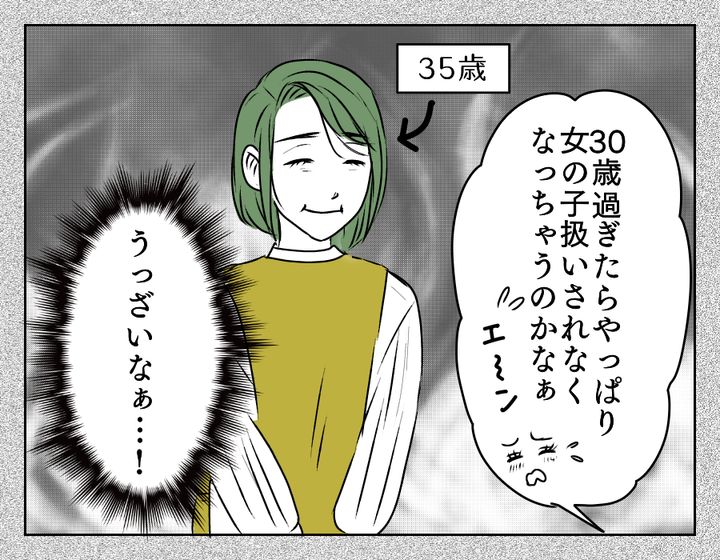 ハルカさん(37)は、夫ユウキさんと2人の娘と暮らす専業主婦。自分より相手のことを考えてしまう、気弱で優しい性格の持ち主です。そんなハルカさんは、5年前、7歳下の義姉ユリナさんから「30歳過ぎたらオバサン(当時ハルカさんは32歳)」という年齢マウント発言をされてしまいました。あまりに突然で言い返せず、ヘラヘラ笑って誤魔化してしまったことを今でも悔やんでいるそうです。その後も、会うたび年齢でマウントをとられ続けています。