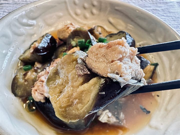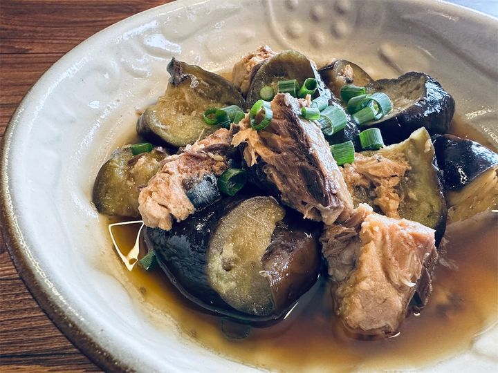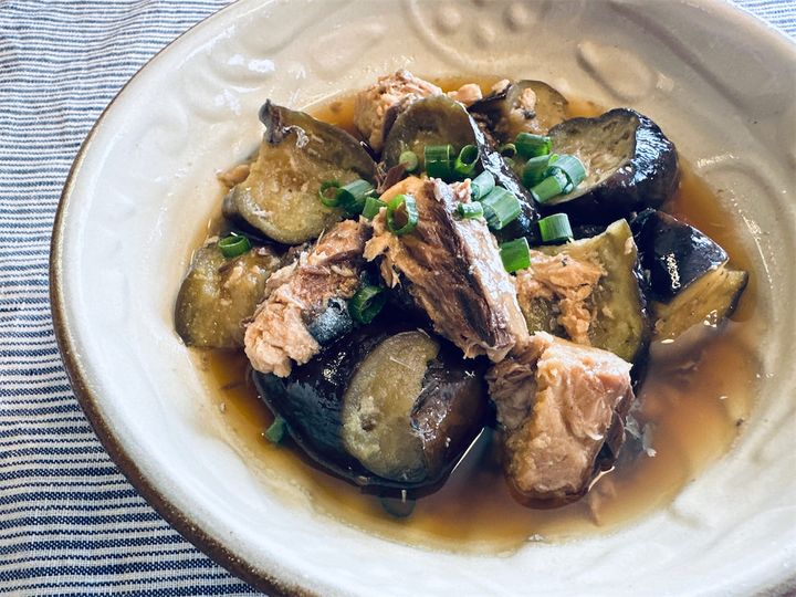 缶詰をパカッと開け、なすをカットするだけで、ほっこりやさしい味わいの煮物が作れるので、忙しい時にもぜひ♪