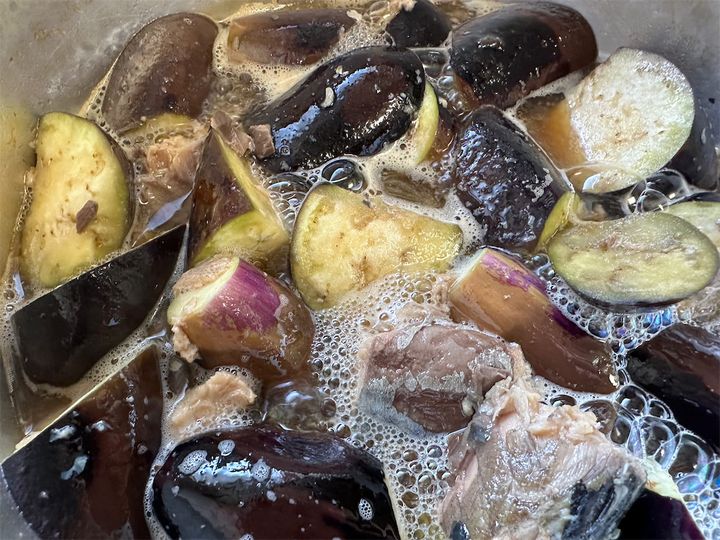 なすとサバの和コラボは新鮮でしたが、相性もバツグン♪ なすは全部で5本使用!煮ることによってかさもグッと減ります。