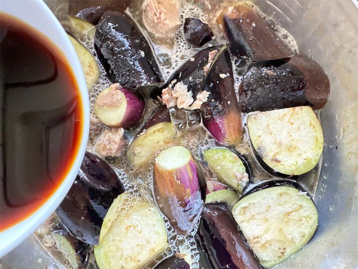 3. 【料理初心者さん感動♡】なす5本が秒で消える「なすとサバ缶の煮物」作ろう!缶汁の旨味シミシミ~【農家直伝】