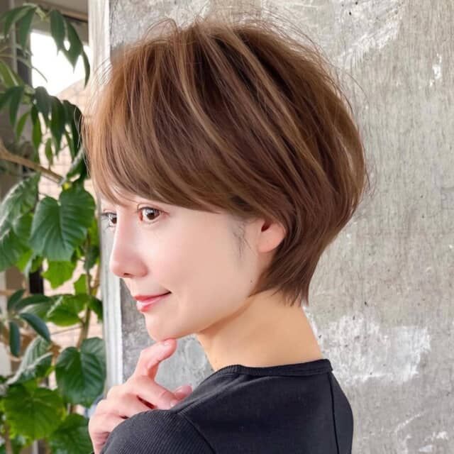 3. 老け見え回避!顔型補整×立体感で叶える【大人の“アカ抜け”ショートヘア】