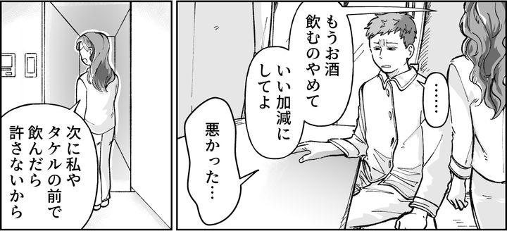 高校生の娘からこっぴどく怒られ、さすがにヨシヒロも返す言葉がなかったようです。自分の酔っ払った姿を突きつけられて、よほど恥ずかしかったのかもしれません。
