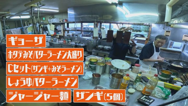 スタッフ:「店が、ジャージャー麵・醤油バターラーメン・ザンギセット・ホタテ大盛・持ち帰りでギョーザ・ザンギ5個です!」