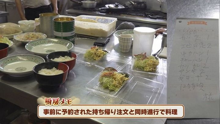 厨房では、事前に予約されていた持ち帰り注文と同時進行で調理を行っています。