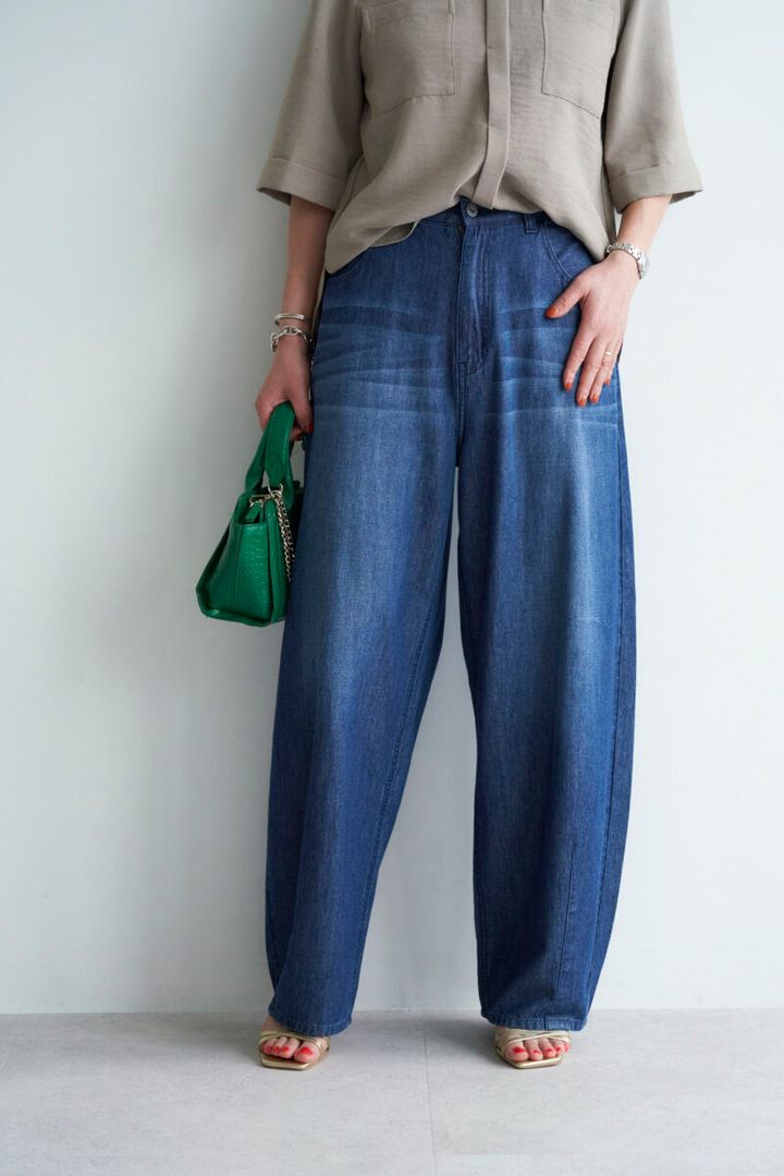 デニムをはくのが億劫になるほど暑い夏には、デニムライクなパンツがおすすめ。「ひんやりして、気持ちいいんですよ。太めのシルエットに合わせて、トップスをシンプルにまとめると決まります」(森さん)