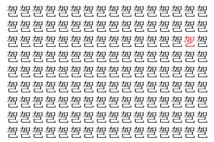 2. 【脳トレ】「㠰」の中に紛れて1つ違う文字がある!?あなたは何秒で探し出せるかな??【違う文字を探せ!】