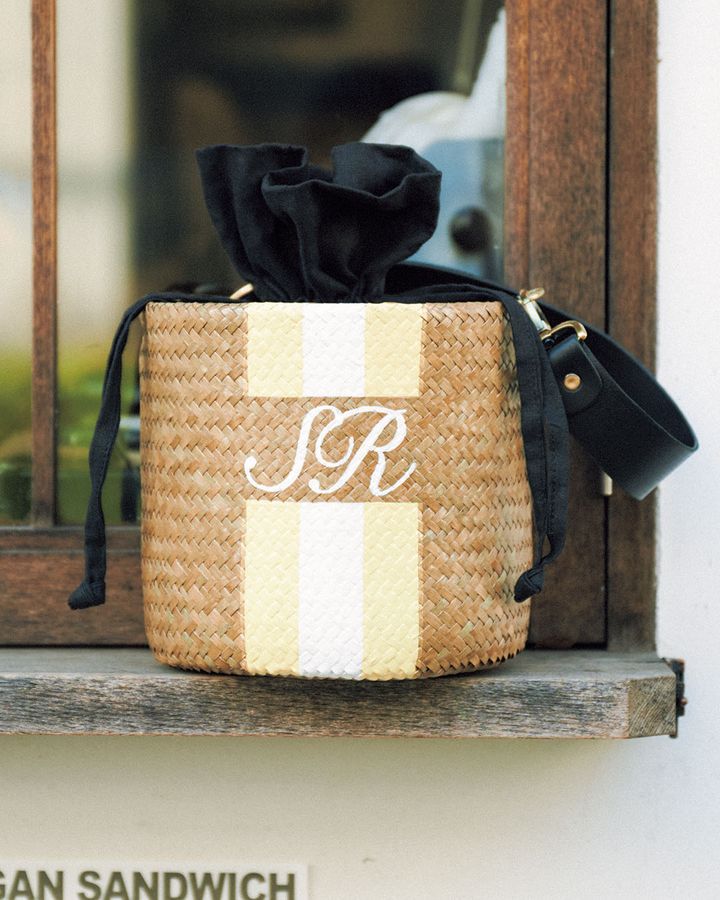 ころんとした丸い筒型のカゴバッグに、イエローカラーのストライプとあなたのイニシャルをタイのアーティストがひとつひとつ丁寧にペイントいたします。持ち手には幅広のレザーストラップ、バッグの内側には巾着がつき、軽くて丈夫!見た目以上の荷物が入るのも嬉しいポイントです。