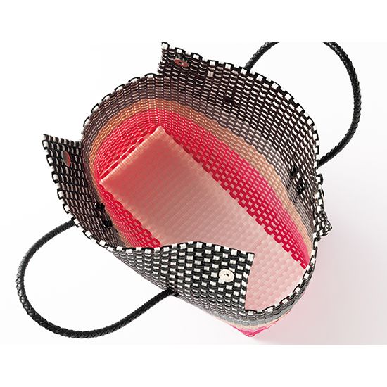 ビニール製の紐で作られているので軽く、汚れがついたり濡れても簡単に拭き取れるので夏のレジャーにも重宝。A4ファイルがしっかり収まる大容量で蓋つきと、しっかり機能性を兼ね備えているのも嬉しいポイント。特別にバーセルフの人気アイテム、取り外せるポンポンをセットに。