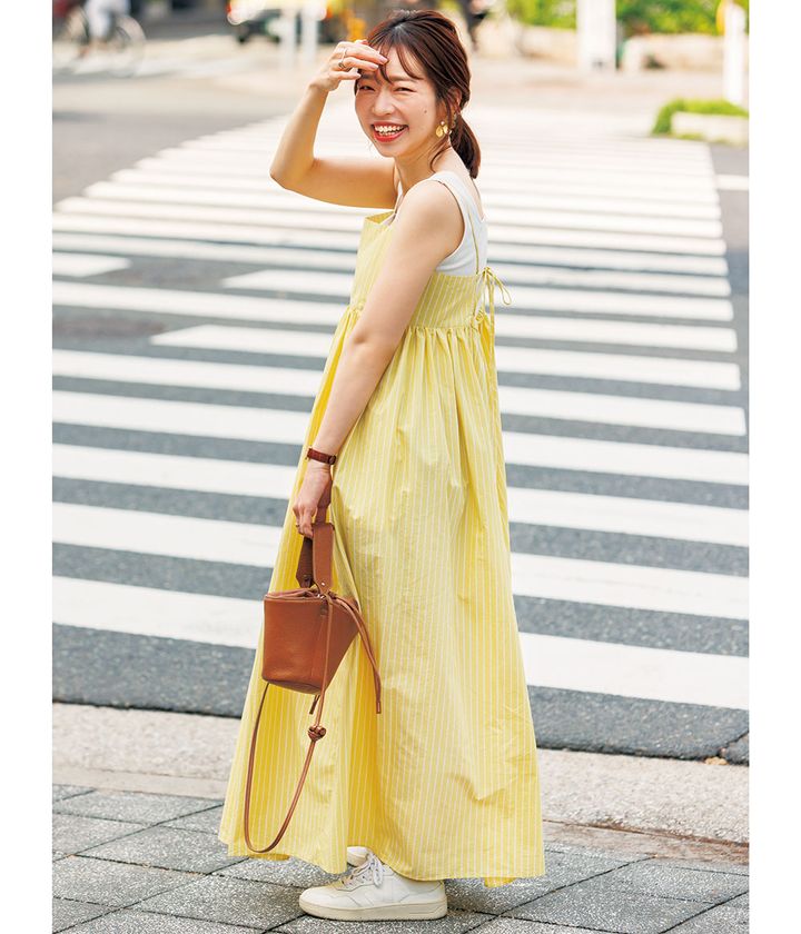 去年買ったyoriのキャミワンピは今年も引き続き活躍! 白タンクとレイヤードして、タウンはもちろん淡路島旅行にも。