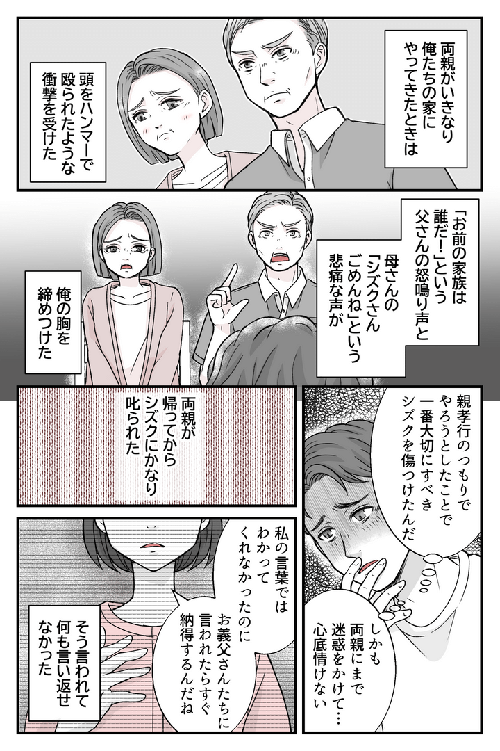 両親が突然来たときは衝撃だった。親孝行のつもりが、一番大切にしないといけないはずのシズクを傷つけ、両親にまで迷惑をかけてしまった……。
