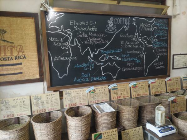 色々な産地のコーヒーが並んでいます
