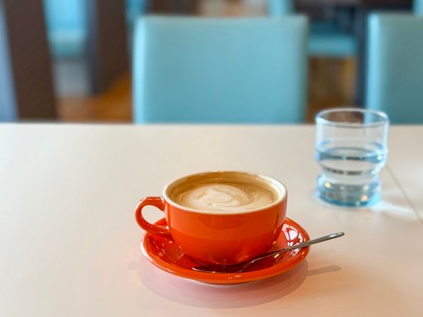 この日はちょうどお昼だったので、食事系のメニューにしました。 焼き上がりまで、20分程。 焼き上がりを待つ間、一緒に注文したドリンクを飲んで待ちたいと思います。 カフェラテのカップがオシャレでした♥