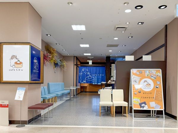 福屋広島駅前店4階、cafesou(カフェソウ)さんの入口。 落ち着いた静かな場所です。