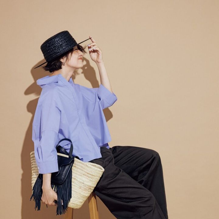目がしっかりと詰まったクオリティの高いラフィア素材は、大人の顔まわりに華やぎを添えるのと同時に、“ワンマイル見え”しがちな夏のおしゃれをクラスアップしてくれる。たとえファストファッションのTシャツを着ていたとしても、大人仕様の帽子さえあれば、自信を持ってどんな場へもお出かけができると思っています。