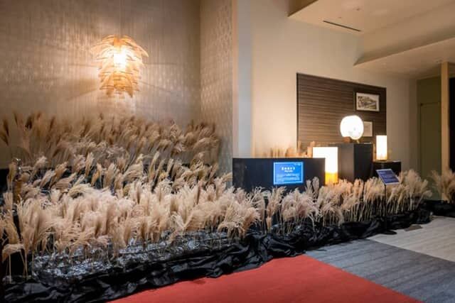 展示会場へと続くエレベータの扉が開くと、そこはすでに鬼の気配がする異界。日本の原風景を思わせるすすき野原には、照明作家・谷 俊幸氏の手による「鬼燈(きとう)」が灯されて、鬼たちが棲む世界へと導きます。