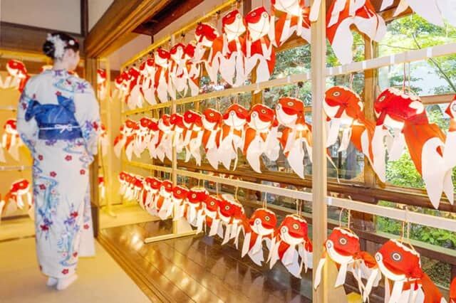 長く続いた鬼の世が終わり、ささやかな幸せが戻った「頂上の間」。山口県柳井市で毎年夏に行われる「柳井金魚ちょうちん祭り」。その金魚ねぶたが今年も登場。他にも新潟県長岡市の会社DI Paletteの「紙にしきごい」が部屋の中をフワフワと泳ぎ、ガラス作家の網野篤子氏が制作した美しい金魚のガラス細工が目を楽しませてくれました。