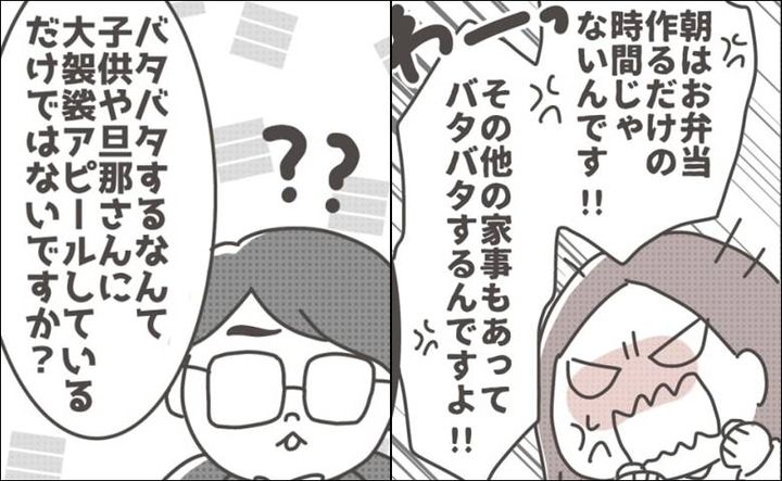 「朝はお弁当を作るだけの時間じゃない。その他の家事もあってバタバタするんですよ!」