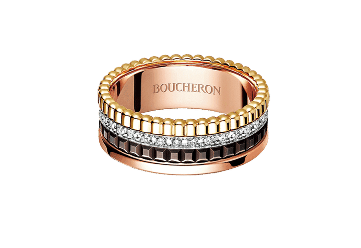 リング:〈キャトル クラシック〉左手中指[YG×PG×WG×ブラウンPVD×DIA]¥836,000※予定価格(ブシュロン/ブシュロン クライアントサービス)