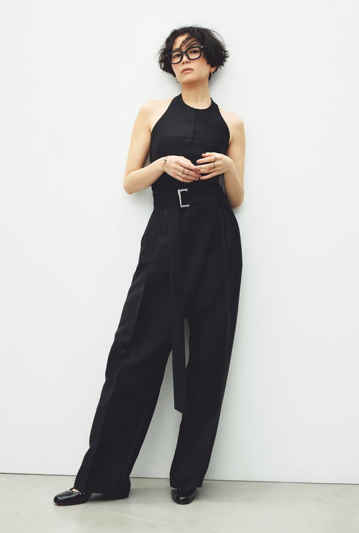 「チェーン的なジュエリーにマニッシュなセットアップって、シンプルでかっこいいスタイルの代表格。あえてそのイメージのままに考えたスタイリングです。働くミューズ読者には、こんな感じで通勤してほしいなっていう期待を込めて」