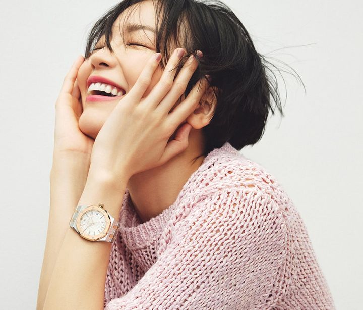 時計:〈ロイヤル オーク オートマティック〉[SS× PG]¥4,675,000(オーデマ ピゲ/オーデマ ピゲ ジャパン)、ニット¥86,900(マディソンブルー)