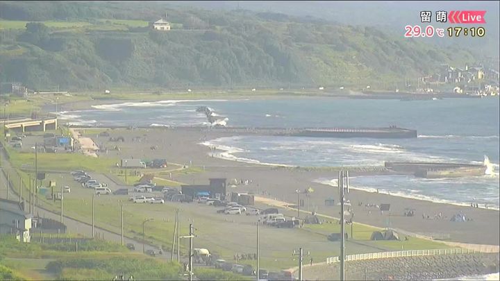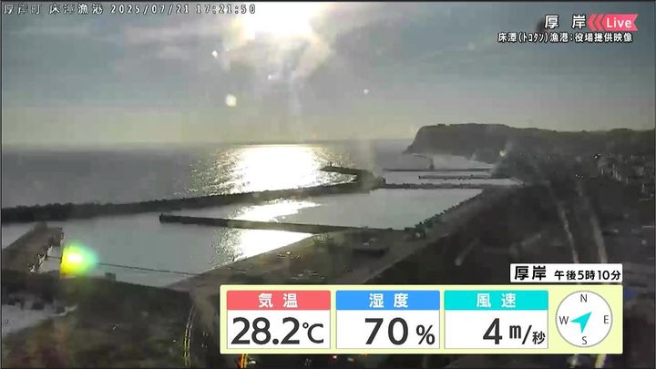 背景は21日午後5時ごろの厚岸町床潭漁港防災カメラ