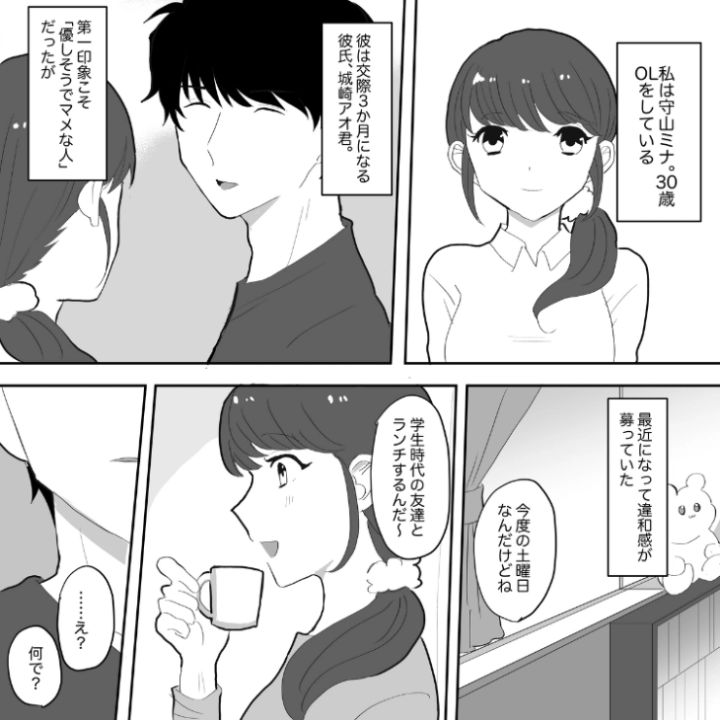 主人公の守山ミナは付き合って3ヶ月になる彼氏がいた。最初は優しい男性だなという印象だったものの、最近その印象が変わってきて・・・。