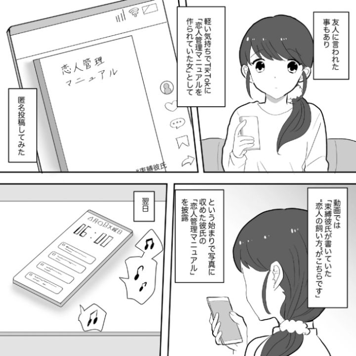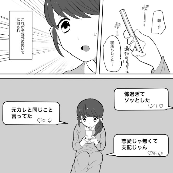 軽い気持ちでSNSにあげた元カレの〝恋人管理マニュアル〟が思いのほか拡散されてしまい、元カレの周囲の人にまで届いてしまいました。少しやりすぎた感もありますが、自業自得な結果なのかもしれませんね。