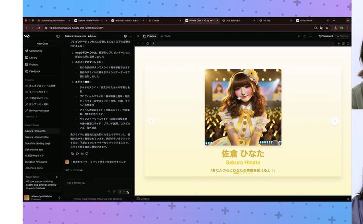プロンプトに基づきながら架空の「推し」を作成しているところです。