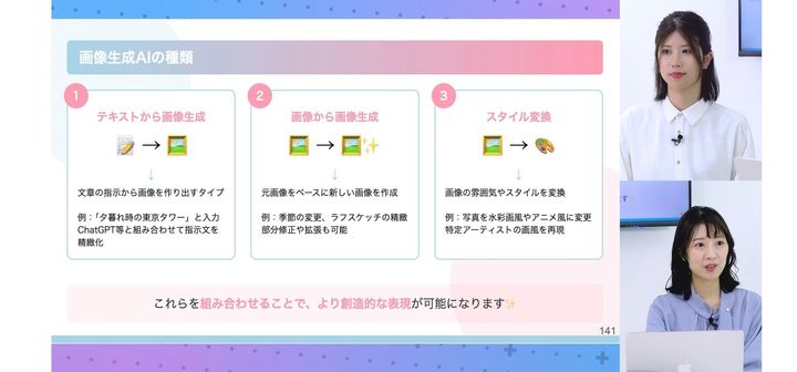 ②生成AIの基本から応用までを体系的に身につけられる