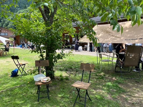 共用の飲食スペースはたくさん用意されています。 建物内や軒下の席もあれば、芝生エリアにはタープが張られた席もあり、より自然を感じながら食事や珈琲を楽しむことができました。