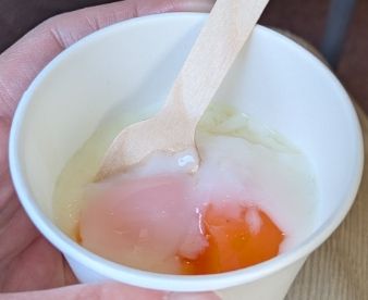 一泊した朝、温泉卵を作って食べてみました。こんなふうにほったらかした後30分ぐらいでできあがり。