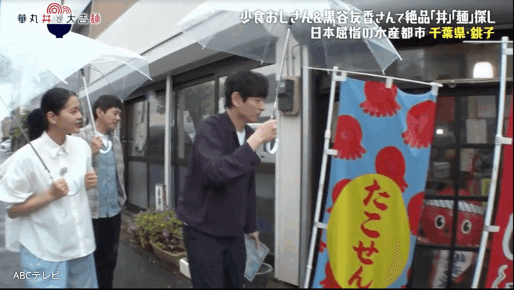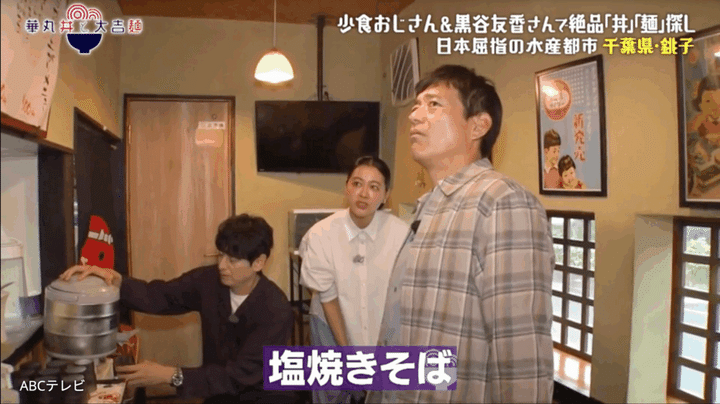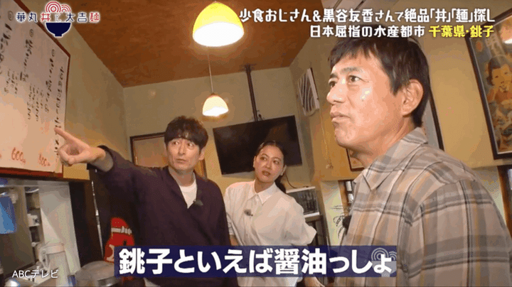 華丸が「塩焼きそばと、」と注文し始めると、大吉が「あ、」と声を出す。大吉の目線の先には、しょうゆ焼きそばに添えられた「銚子といえば醤油っしょ」のキャッチコピーがあった。銚子は江戸時代から醤油作りが盛んな醤油の町なのだ。